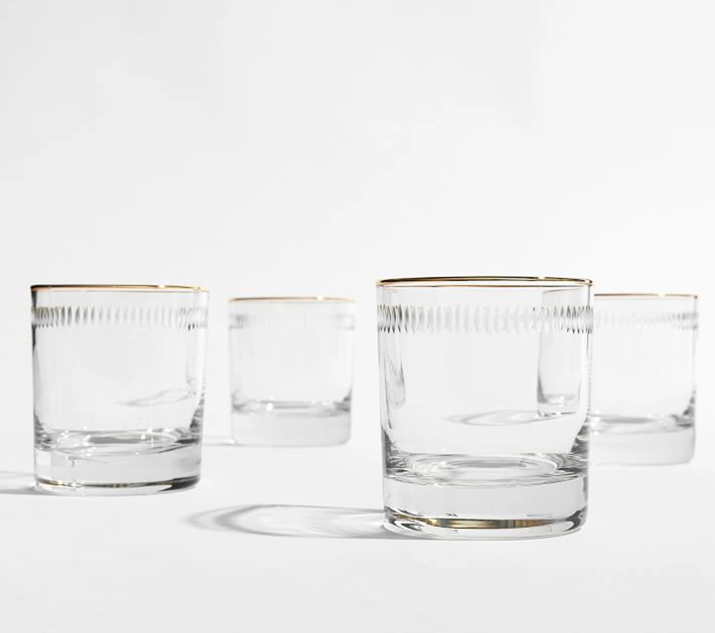 Potterybarn's Etched Gold Rim Double Old Fashioned Glasses